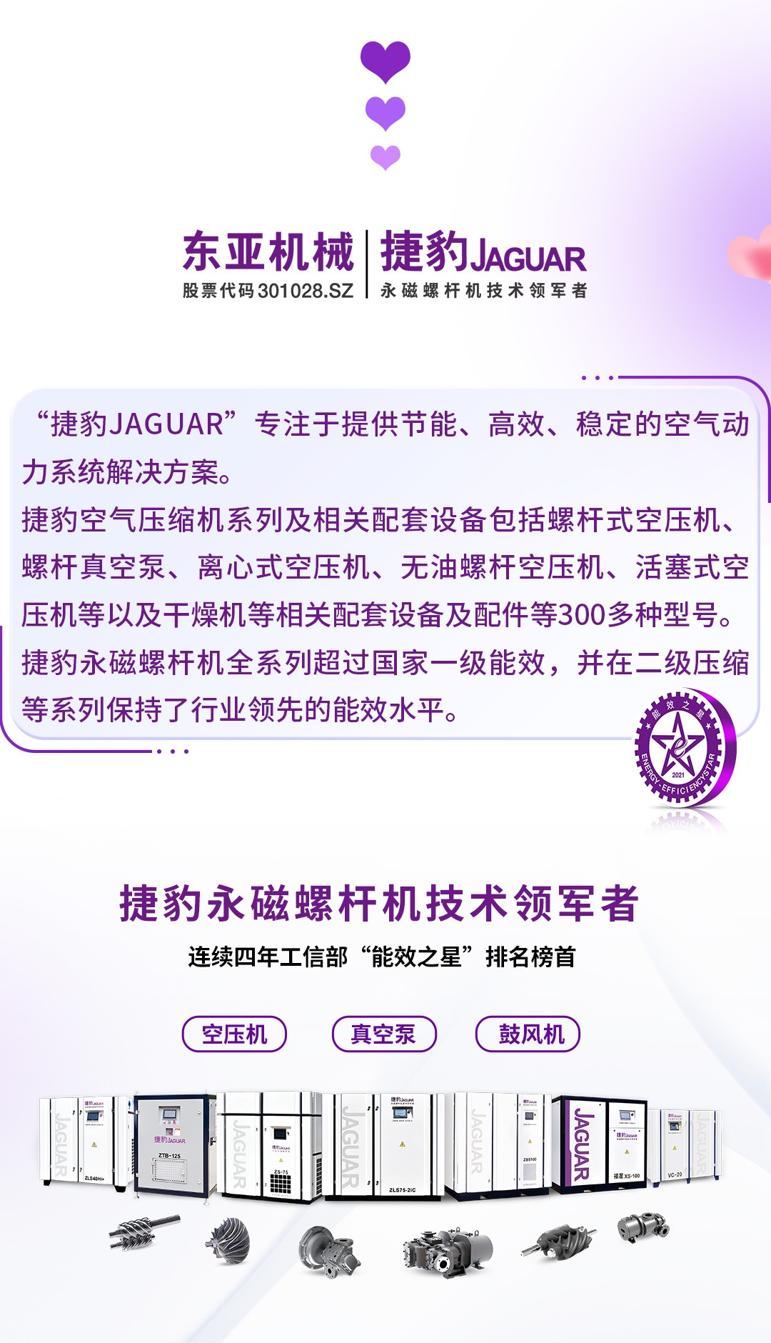 连续四年荣登工信部能效之星榜首,捷豹永磁螺杆机持续领跑