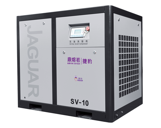 捷豹工频无油涡旋机分别为SV系列、SV-05T(有无气桶之别),用户可根据工况需求自行选择。